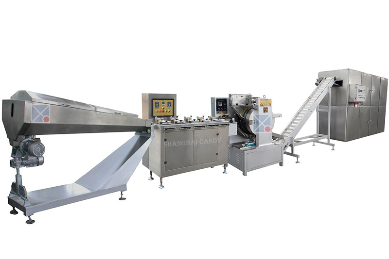 The line is mainly composed of vacuum cooker, batch roller, rope sizer, lollipop forming machine, transfer belt, 5 layer cooling tunnel etc. This line is characterized by its compact structure, less occupied area, stable performance, less wastage and high efficient production. The whole line is manufactured as per GMP standard, and in accordance with the requirement of GMP Food Industry. Continuous mirco film cooker and steel cooling belt is optional for full automation process.