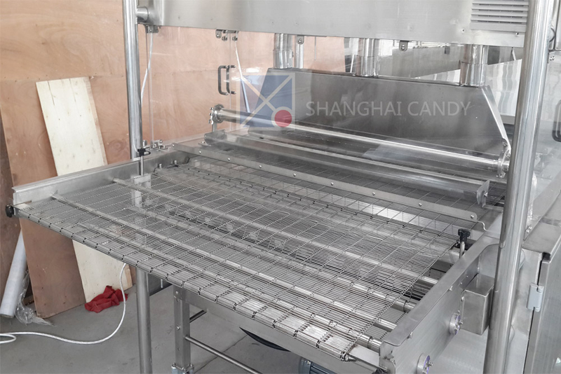The enrobing machine is to coat chocolate on various food such as biscuit, wafers, egg-rolls, cake pie and snacks, etc. It mainly consists of chocolate feeding tank, enrober head, cooling tunnel.